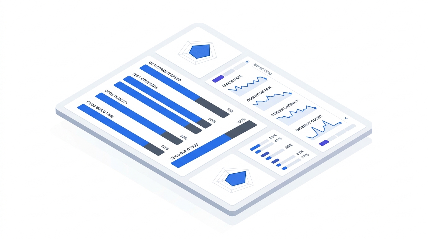 - Two lagging indicators — MTTC quarter-over-quarter, exception count trend.